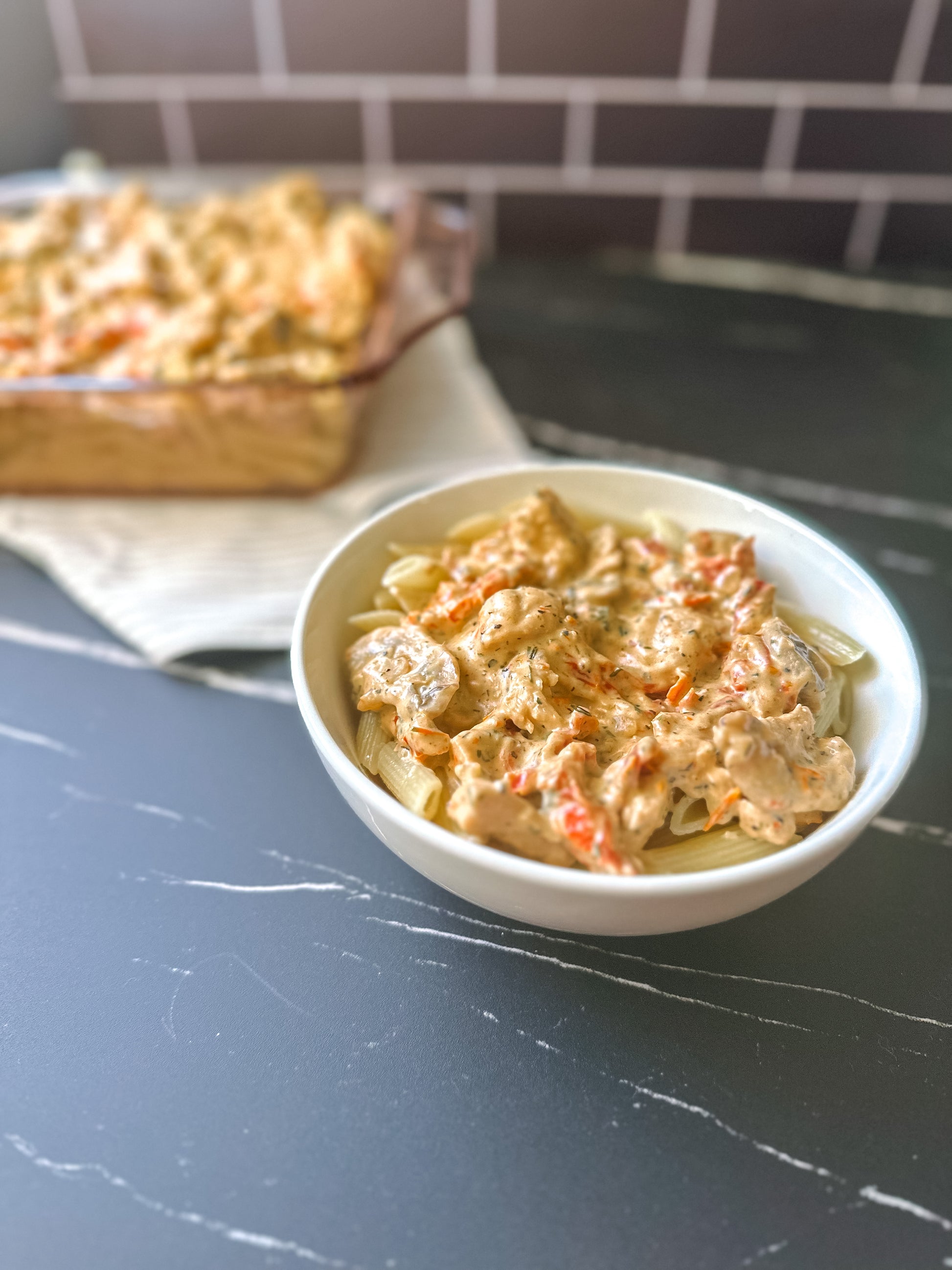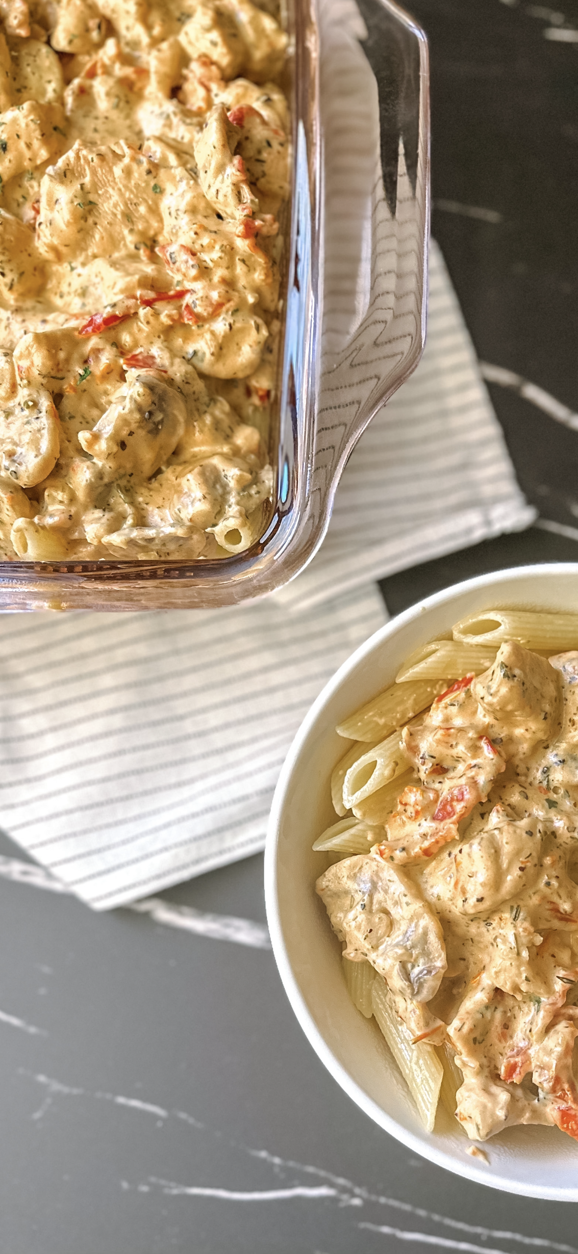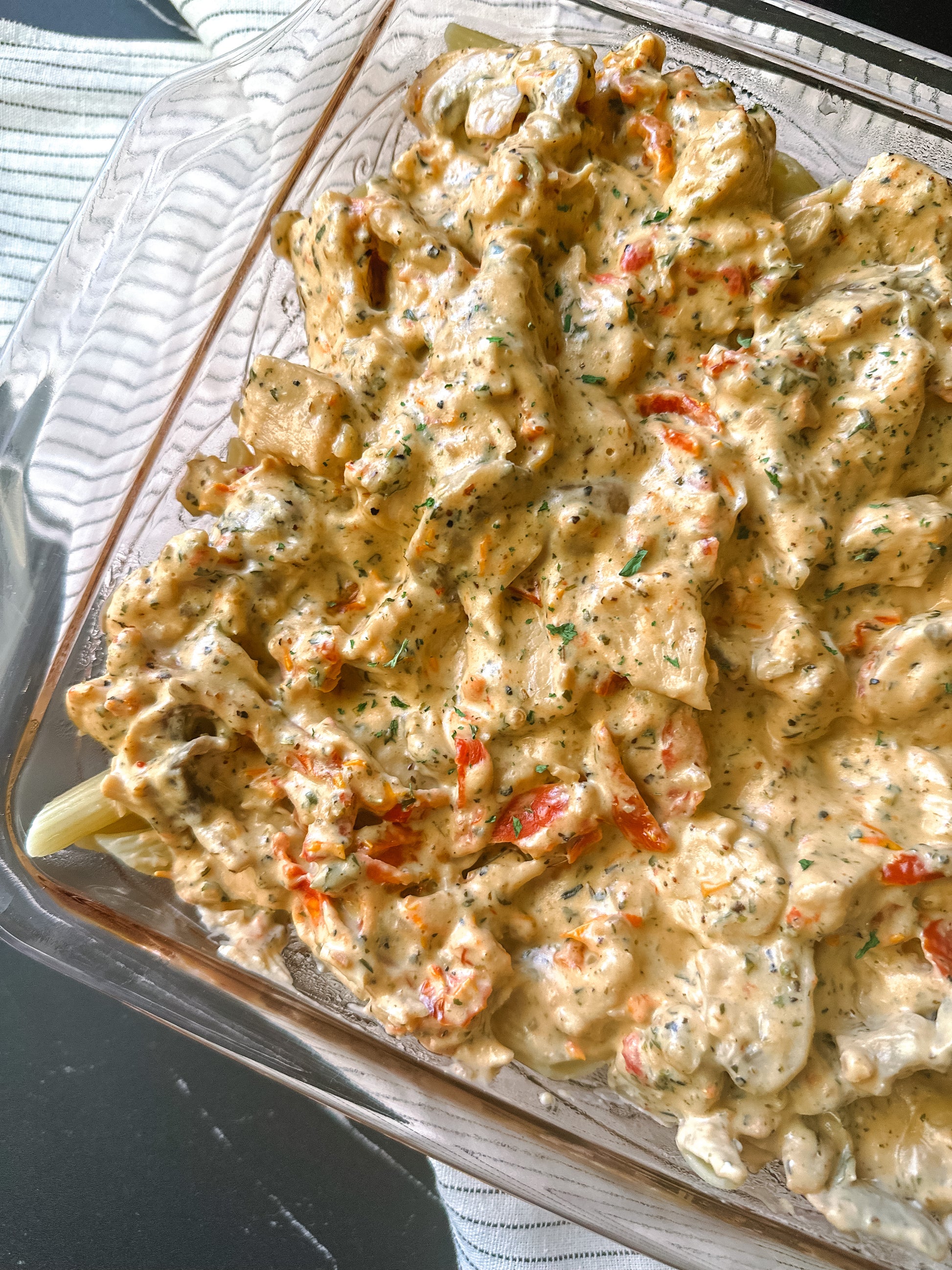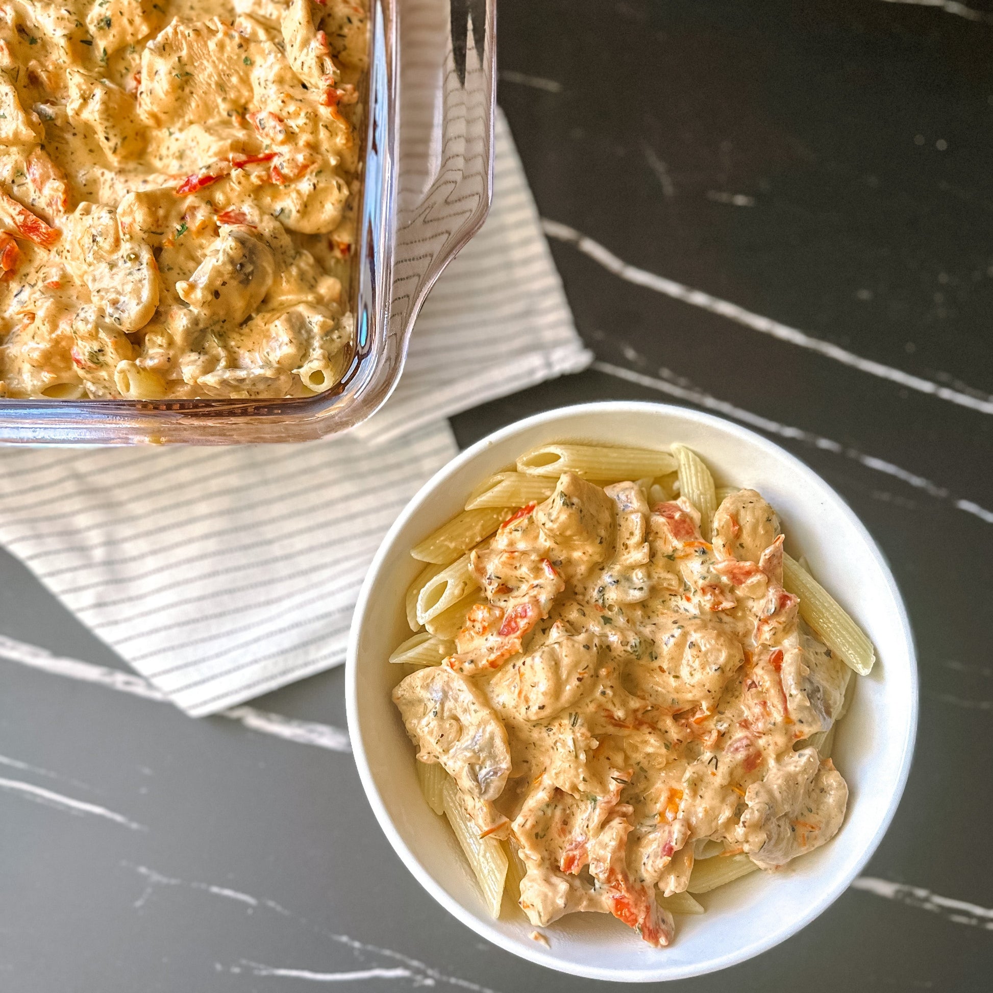 Thank you for trying our Crock'n CLE Creamy Tuscan Chicken, Taylor! I'm glad to hear you enjoyed it with pasta. The sun-dried tomatoes definitely give it another level of flavor!
